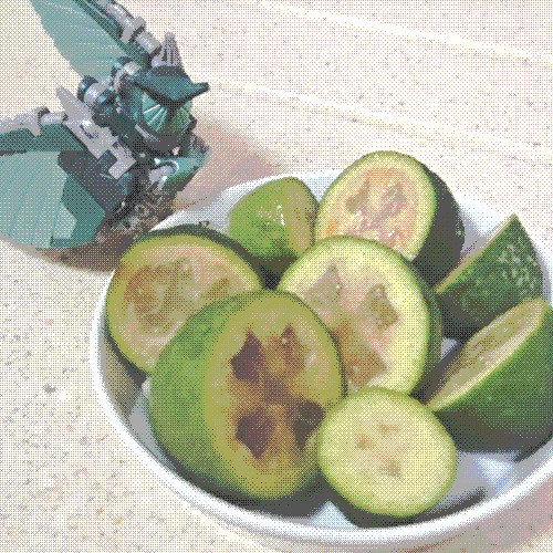 Everyone say hi to feijoa, pronounced "fayยทowยทuh" and scientific name Feijoa sellowiana ๐ฅณ