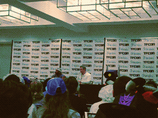 I caught the tail end of the Beast Wars panel and stayed for the TFOne Q&A panel with Evan Michael Lee and Jason Konopisos. (Jazz and Shockwave's voice actors, respectively). They invited a cosplayer to the stage and had a little skit it was honestly really cute. The panel was lowkey funny as hell Evan and Jason is such a comedic duo lol. The cosplayer—mini-Shockwave, as the VAs called them—stayed on the stage the entire time and answered questions too it was really wholesome. Some things I remembered from the panel: